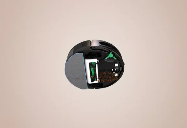 Robotul poate aspira și șterge în același timp. Există 1 perie și un coș de colectare pentru colectarea murdăriei, și un rezervor de apă și un pad care se montează la nevoie pentru ștergere umedă.
