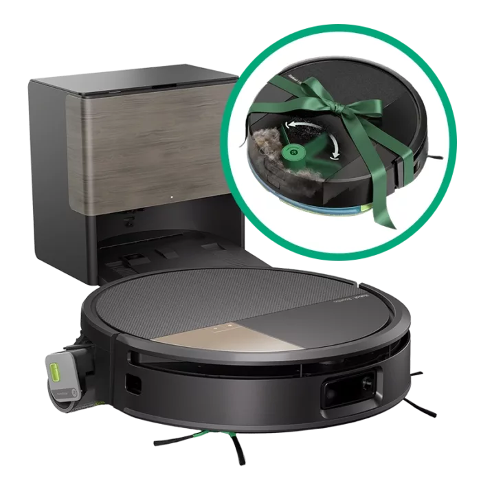Setul include Roomba® Combo® 205 DustCompactor™ – un robot 2-în-1 care aspiră și spală, depozitând murdăria direct în interior, astfel încât necesită golire la aproximativ două luni.